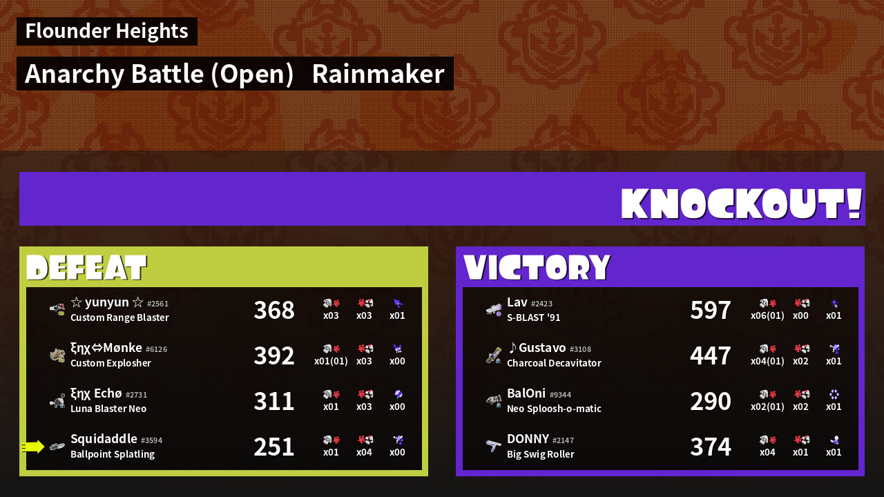 | Mode | Rainmaker - Anarchy Battle (Open) | ||