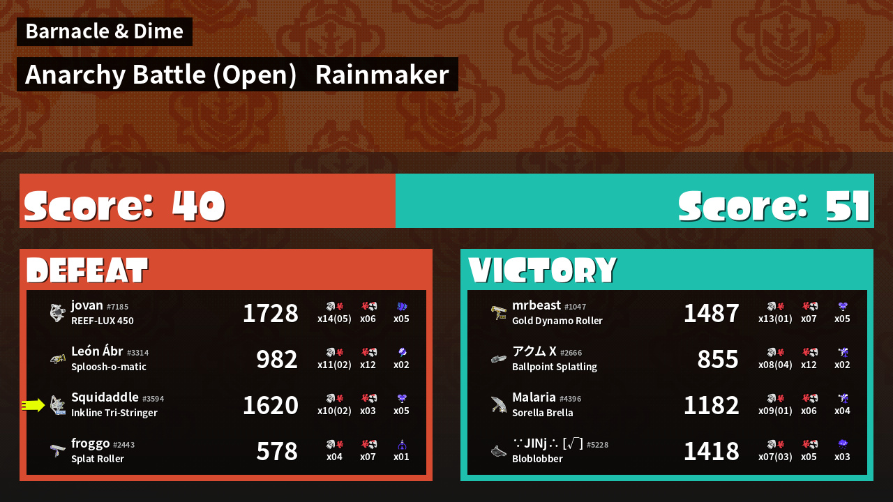| Mode | Rainmaker - Anarchy Battle (Open) | ||