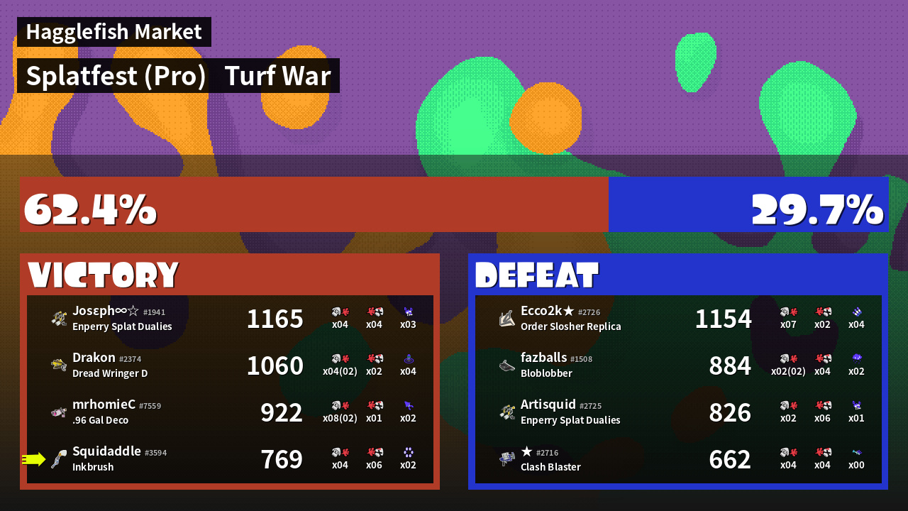 | Medals | #1 Ground Traveler First Splat! #2 Overall Splatter | ||