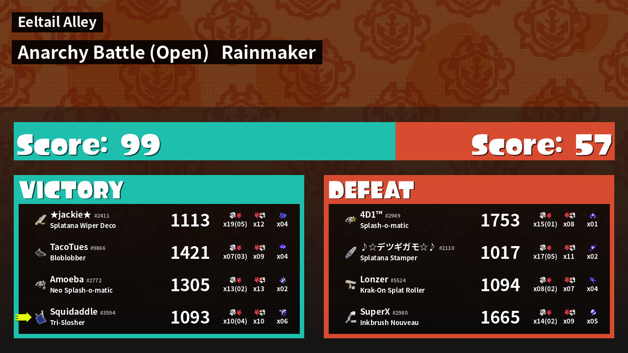 | Mode | Rainmaker - Anarchy Battle (Open) | ||