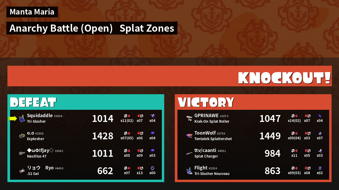 | Mode | Splat Zones - Anarchy Battle (Open) | ||