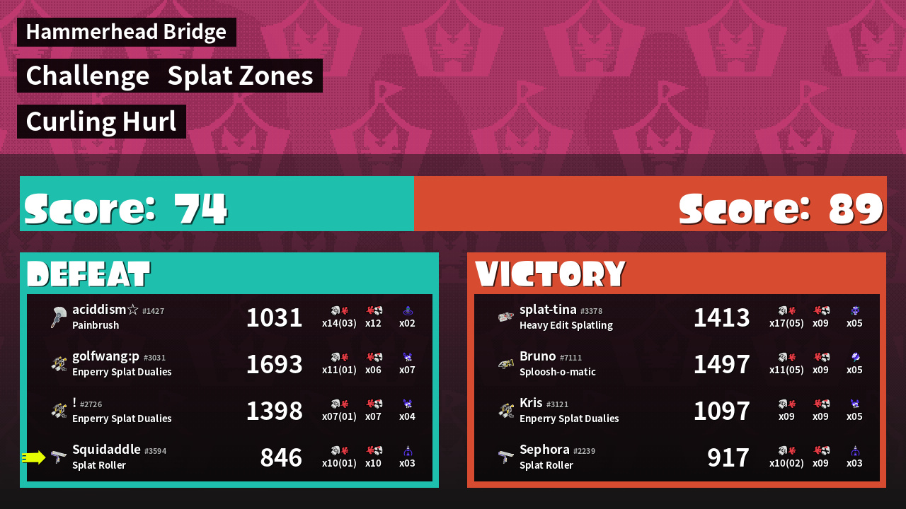 | Medals | #1 Damage Taker #1 Big Bubbler User #2 Splat Assister | ||
