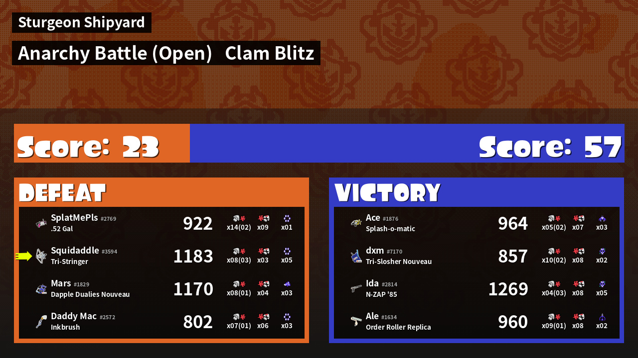 | Mode | Clam Blitz - Anarchy Battle (Open) | ||