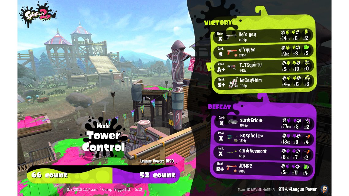 | Mode | Tower Control - League Battle (Twin) | ||||||||||||||||||||||||||||||||||