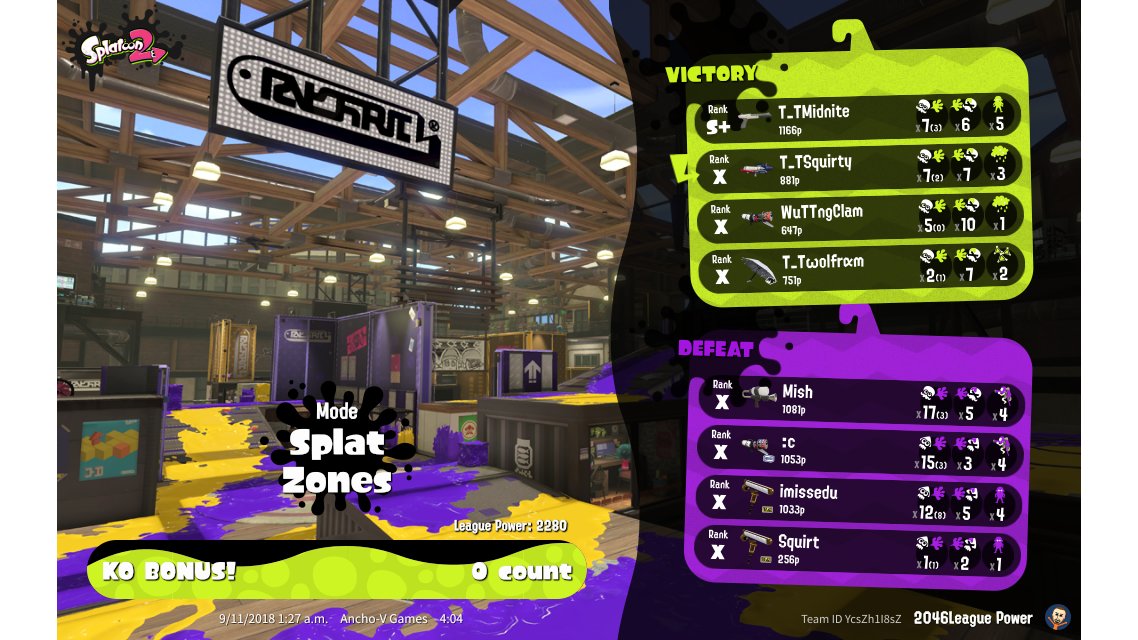 | Mode | Splat Zones - League Battle (Quad) | ||||||||||||||||||||||||||||||||||