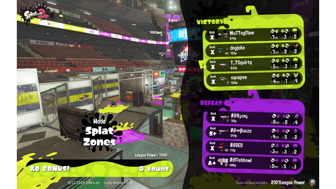 | Mode | Splat Zones - League Battle (Quad) | ||||||||||||||||||||||||||||||||||