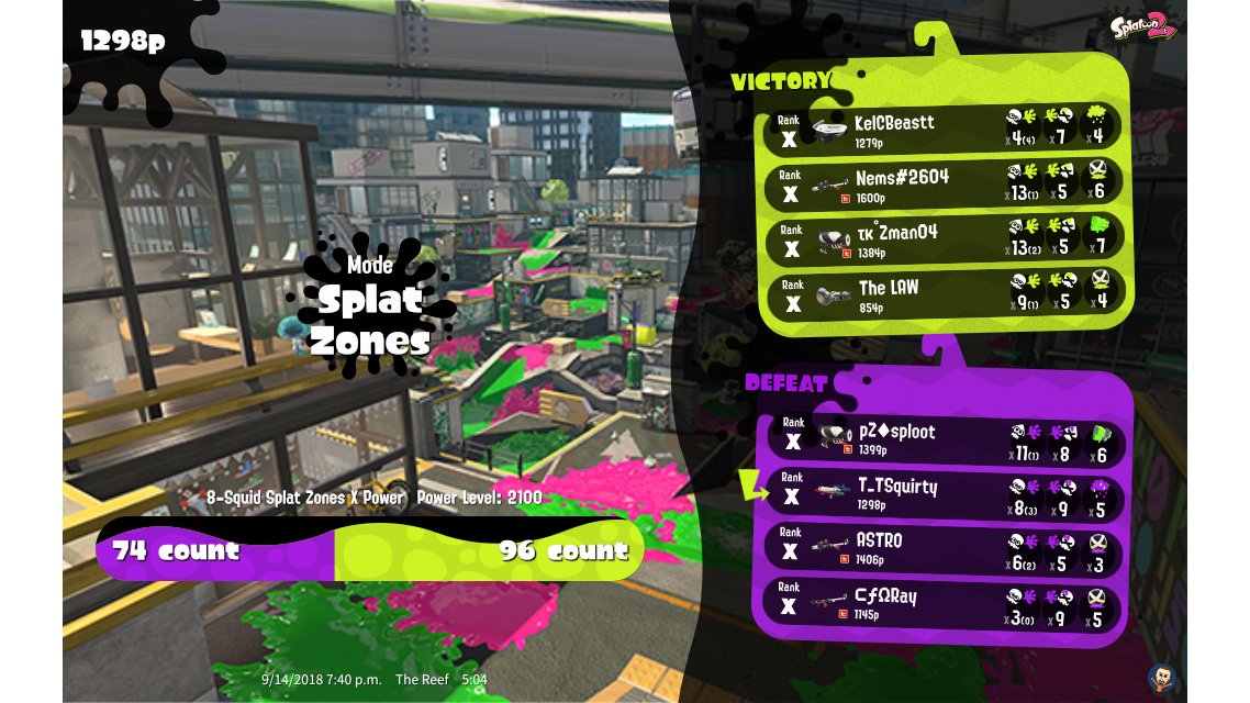 | Mode | Splat Zones - Ranked Battle | ||||||||||||||||||||||||||||||||||