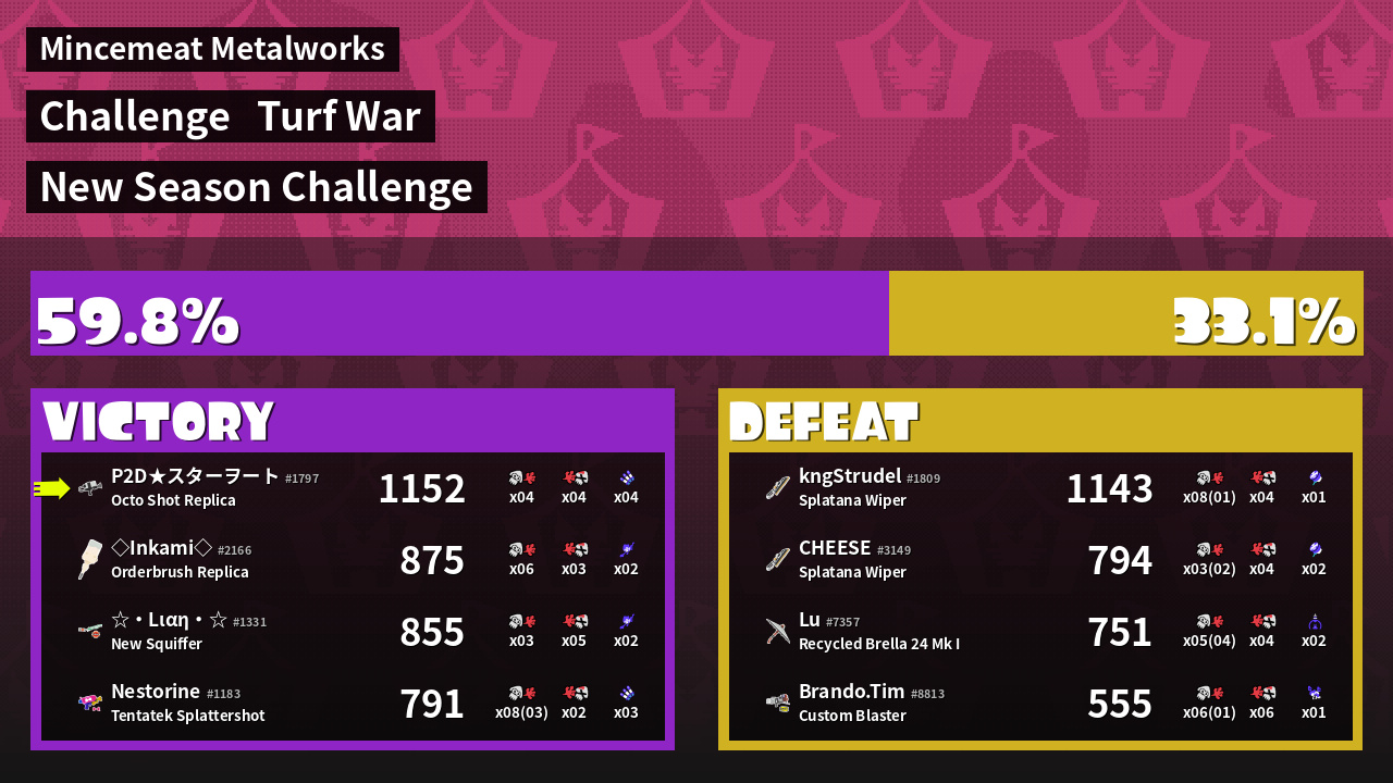 | Mode | Turf War - Challenge | ||