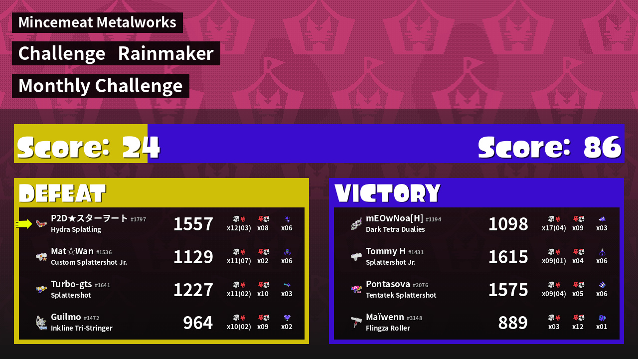 | Medals | #1 Overall Splatter #1 Score Booster Record-Score Setter | ||