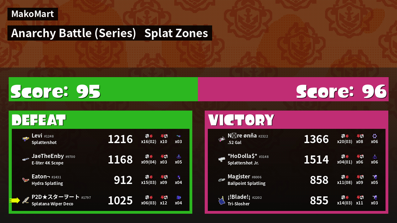 | Mode | Splat Zones - Anarchy Battle (Series) | ||