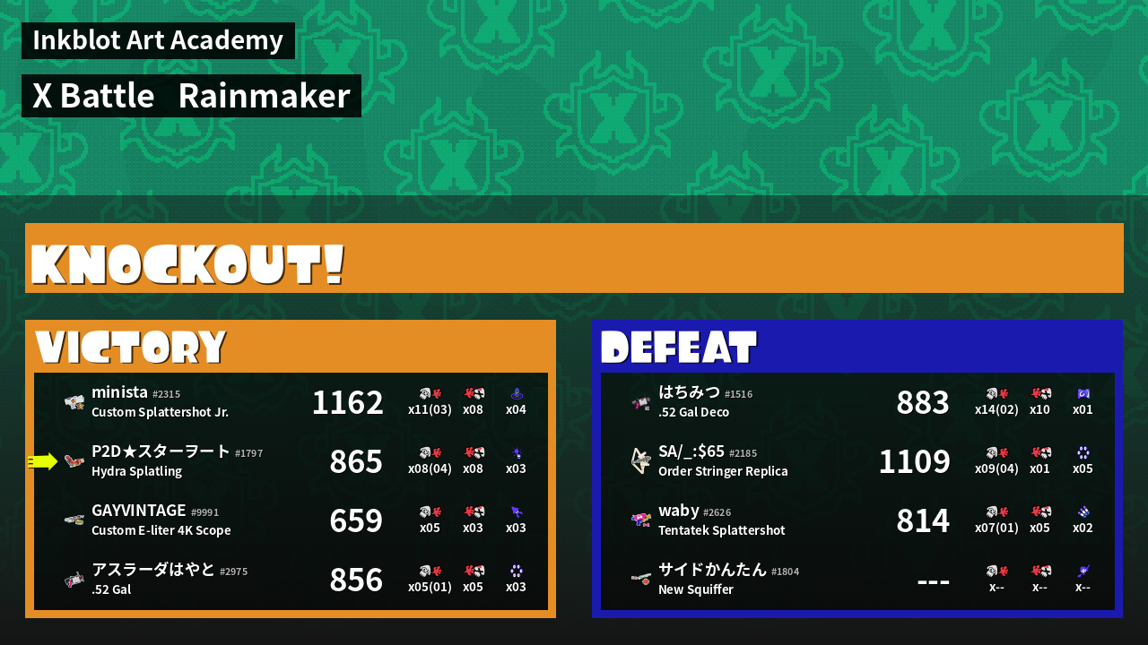 | Weapon | Hydra Splatling ( Autobomb / Booyah Bomb) | ||