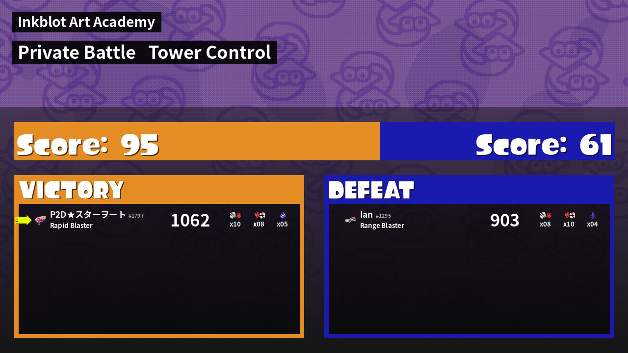 | Medals | #1 Overall Splatter #1 Score Booster Record-Score Setter | ||
