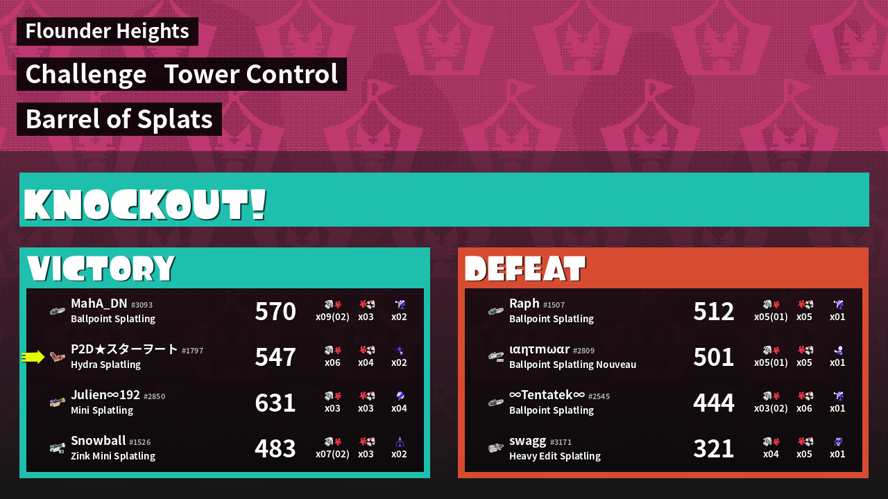 Challenge | Barrel of Splats Muster as much firepower as you can<br />in this battle of the splatlings! | ||