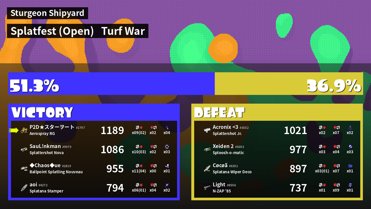 | Mode | Turf War - Splatfest (Open) | ||