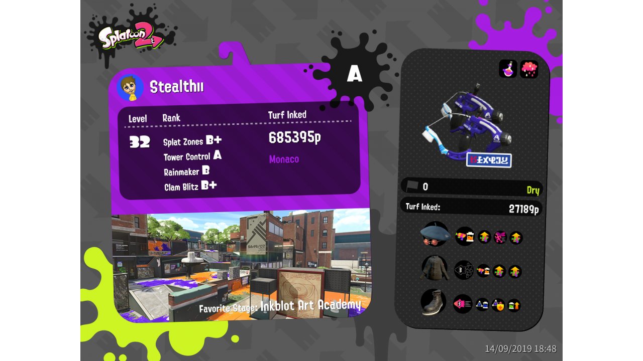 | Name | Weapon | Level | Rank | Inked | k+a/sp | k/d |
