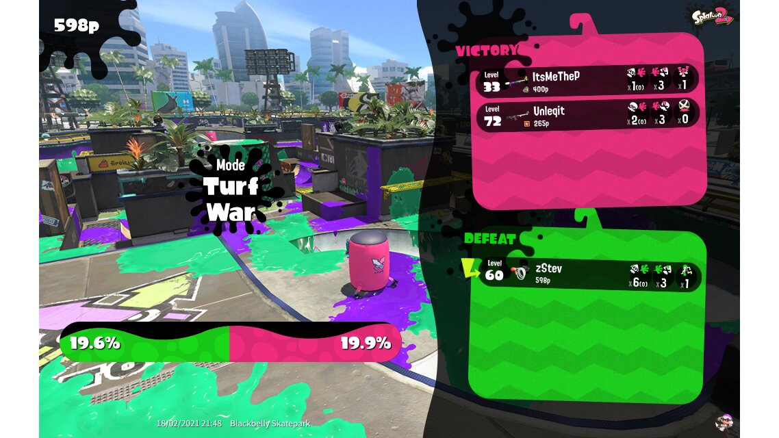 | Mode | Turf War - Private Battle | ||||||||||||||||||||||||||||||||||