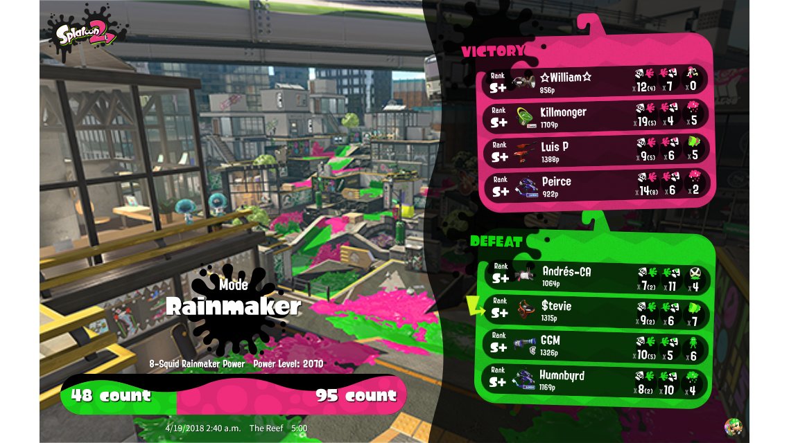 | Name | Weapon | Level | Rank | Inked | k+a/sp | k/d |