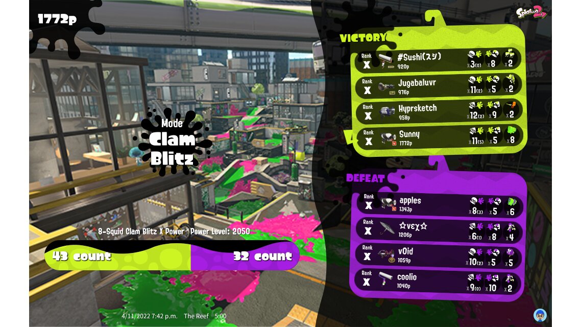 | Mode | Clam Blitz - Ranked Battle | ||||||||||||||||||||||||||||