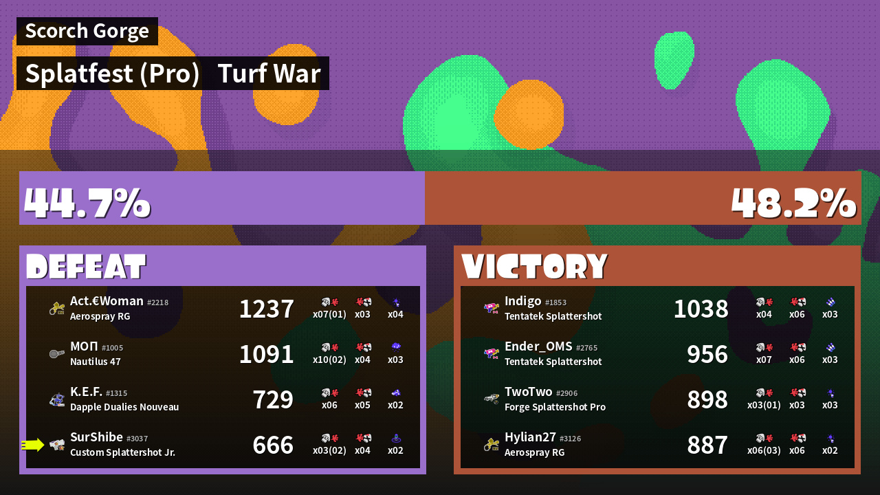 | Mode | Turf War - Splatfest (Pro) | ||