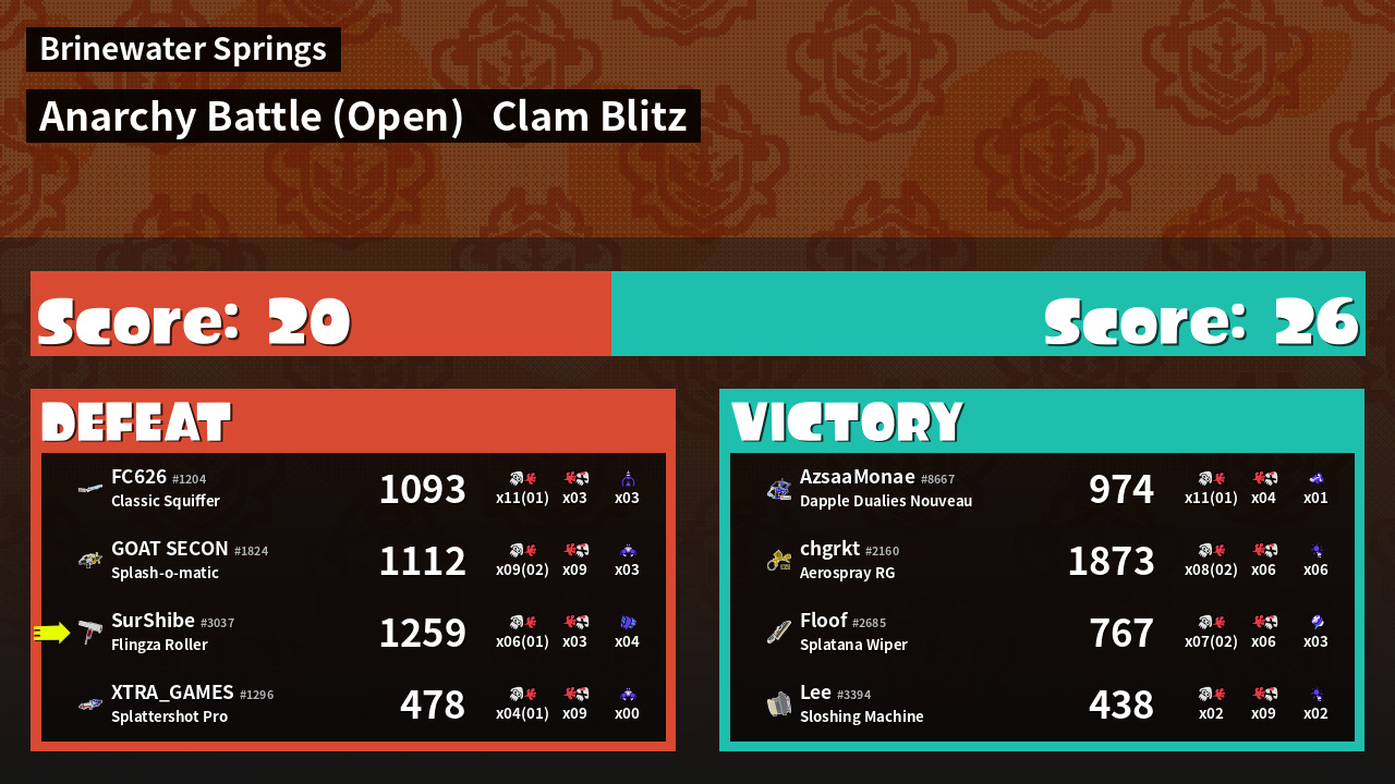 | Mode | Clam Blitz - Anarchy Battle (Open) | ||