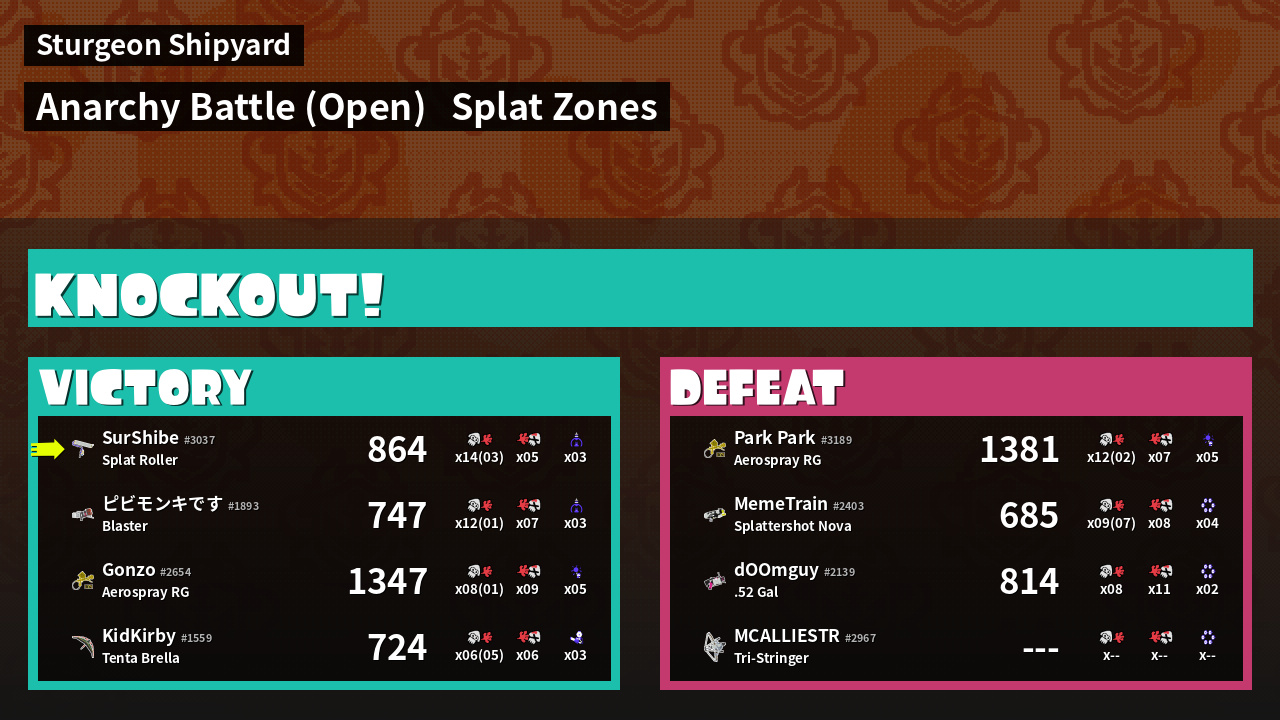 | Mode | Splat Zones - Anarchy Battle (Open) | ||