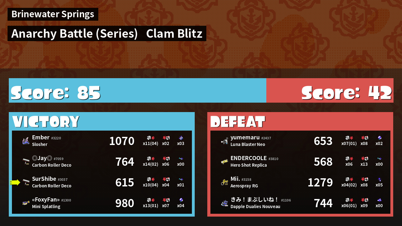 | Weapon | Carbon Roller Deco ( Burst Bomb / Trizooka) | ||