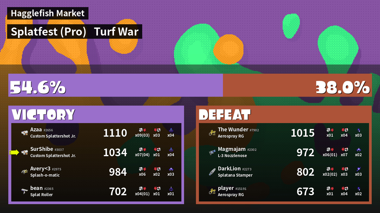 | Medals | #1 Super Jump Spot #1 Splat Assister #1 Wave Breaker User | ||