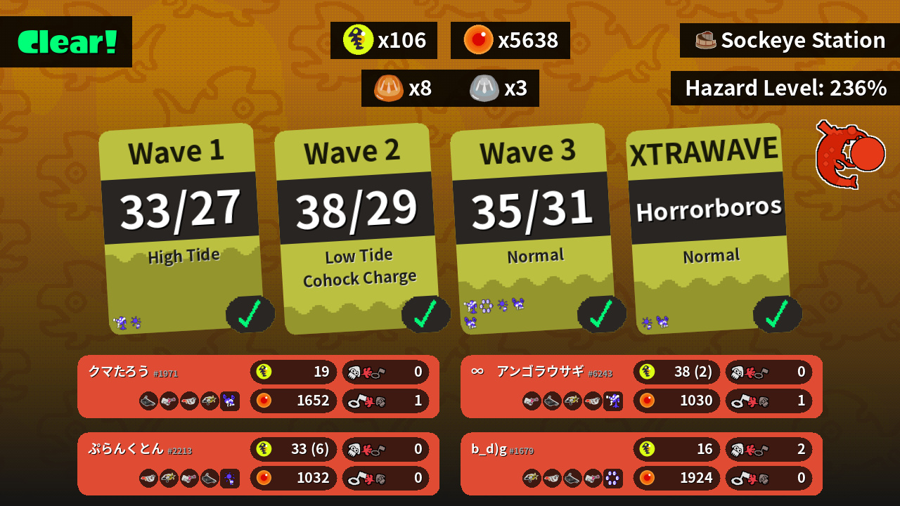 | Boss Salmonid | 29 | 16 | 17 | 23 |
