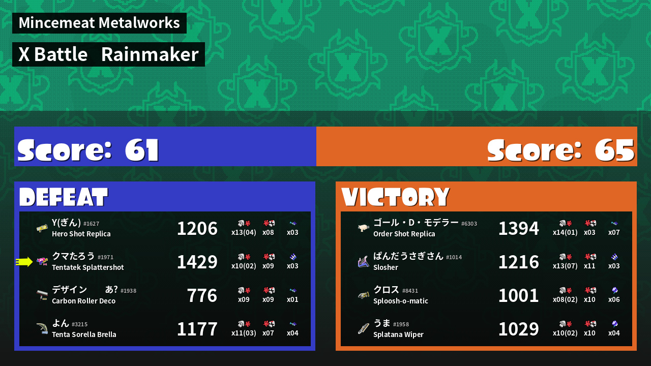 | Weapon | Tentatek Splattershot ( Splat Bomb / Triple Inkstrike) | ||