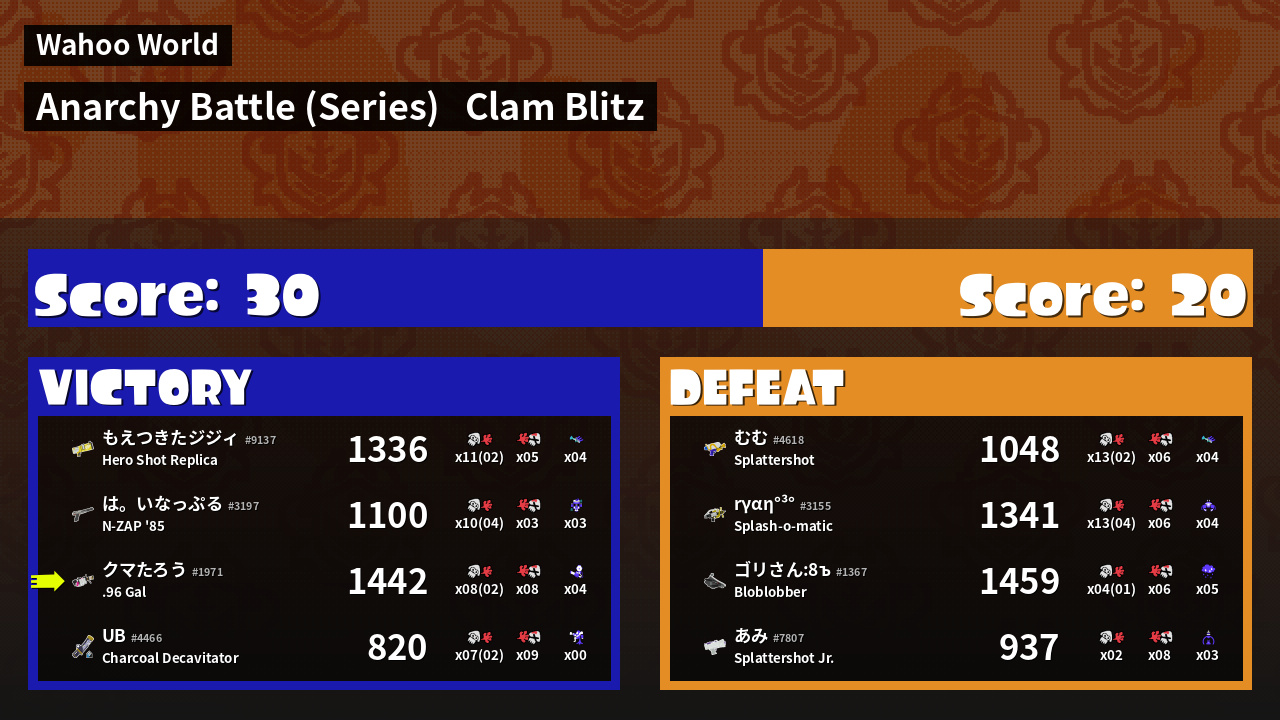 | Mode | Clam Blitz - Anarchy Battle (Series) | ||