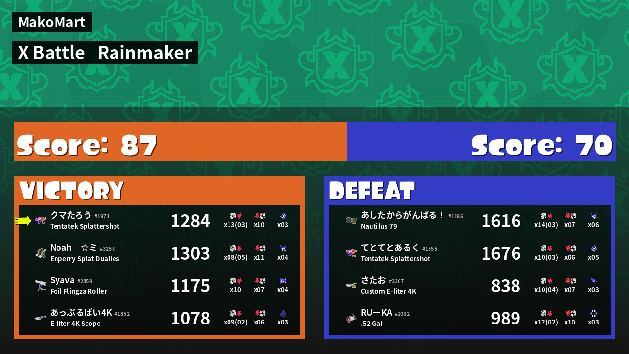 | Weapon | Tentatek Splattershot ( Splat Bomb / Triple Inkstrike) | ||
