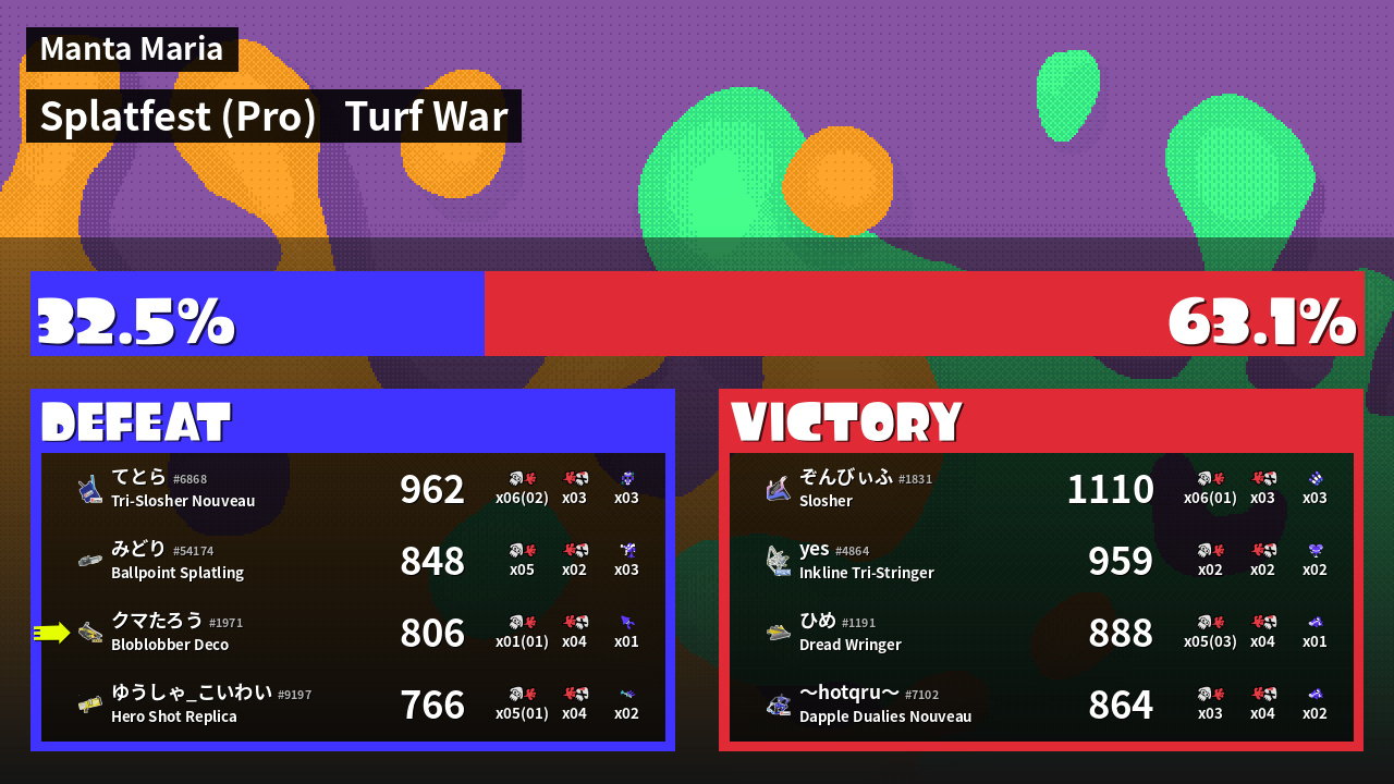 | Mode |    Turf War -   Splatfest (Pro) | ||