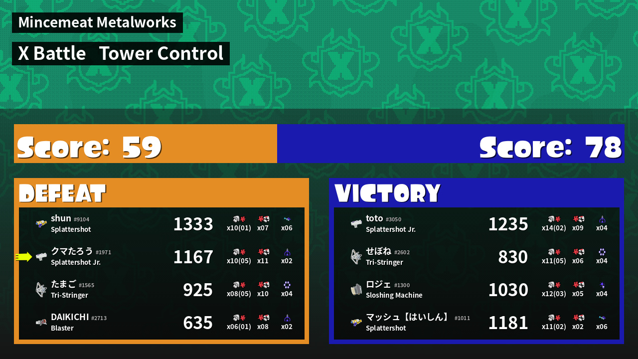 | Mode | Tower Control - X Battle | ||