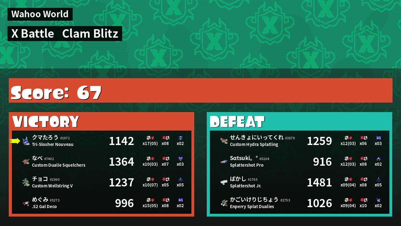 | Weapon | Tri-Slosher Nouveau ( Fizzy Bomb / Tacticooler) | ||
