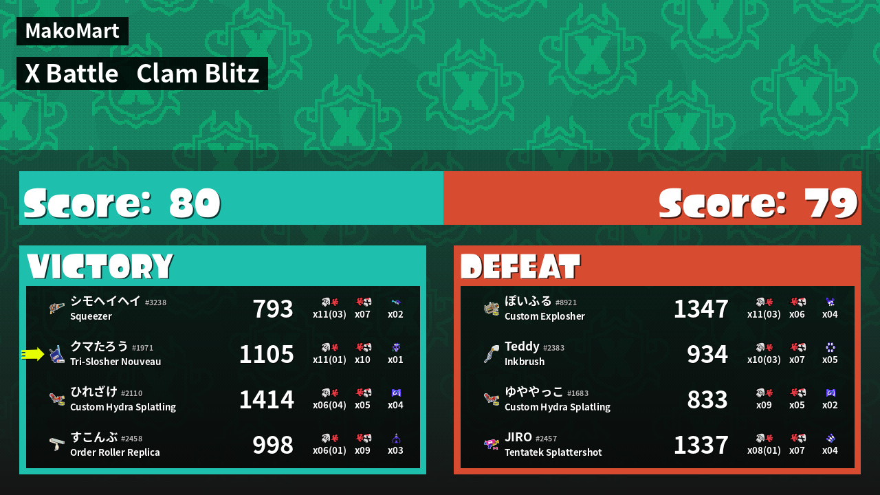 Kills / Deaths | 10 + 1 / 10 = Kill Ratio: 1.00 | ||