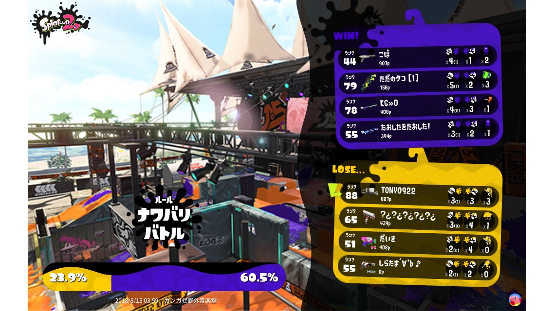 | Mode | Turf War - Regular Battle | |||||||||||||||||||||||||||||||||||||