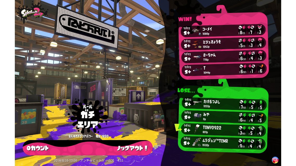 | Mode | Splat Zones - Ranked Battle | |||||||||||||||||||||||||||||||