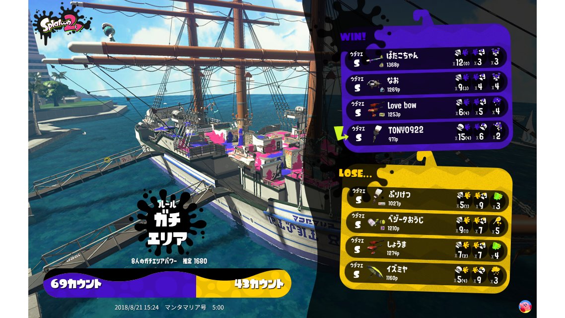 | Mode | Splat Zones - Ranked Battle | ||||||||||||||||||||||||||||||||||
