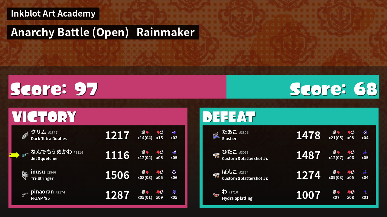 | Mode | Rainmaker - Anarchy Battle (Open) | ||