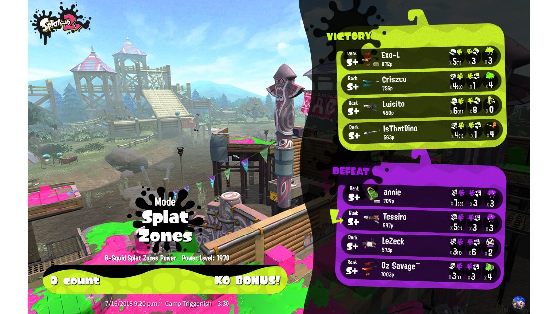 Mode | Splat Zones - Ranked Battle | |||||||||||||||||||||||||||||||||||||