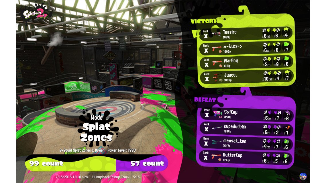 Mode | Splat Zones - Ranked Battle | |||||||||||||||||||||||||||||||||||||