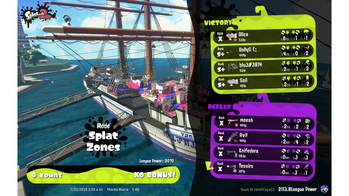 | Mode | Splat Zones - League Battle (Quad) | |||||||||||||||||||||||||||||||||||||