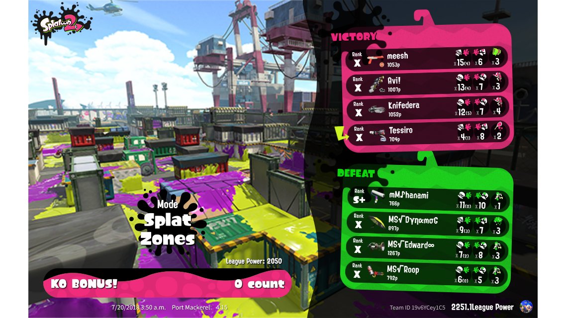 | Mode | Splat Zones - League Battle (Quad) | |||||||||||||||||||||||||||||||||||||
