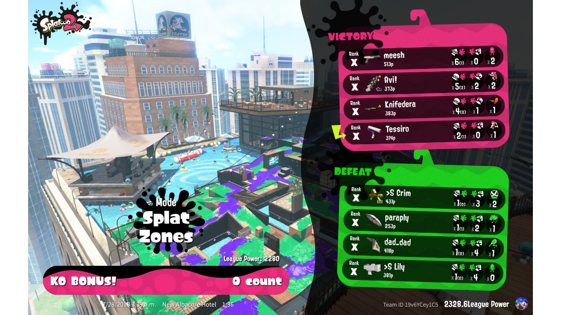 | Mode | Splat Zones - League Battle (Quad) | |||||||||||||||||||||||||||||||
