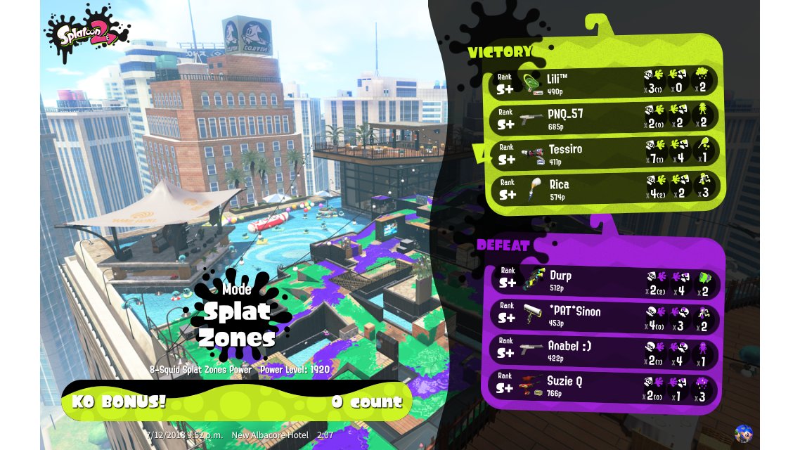 | Mode | Splat Zones - Ranked Battle | ||||||||||||||||||||||||||||||||||