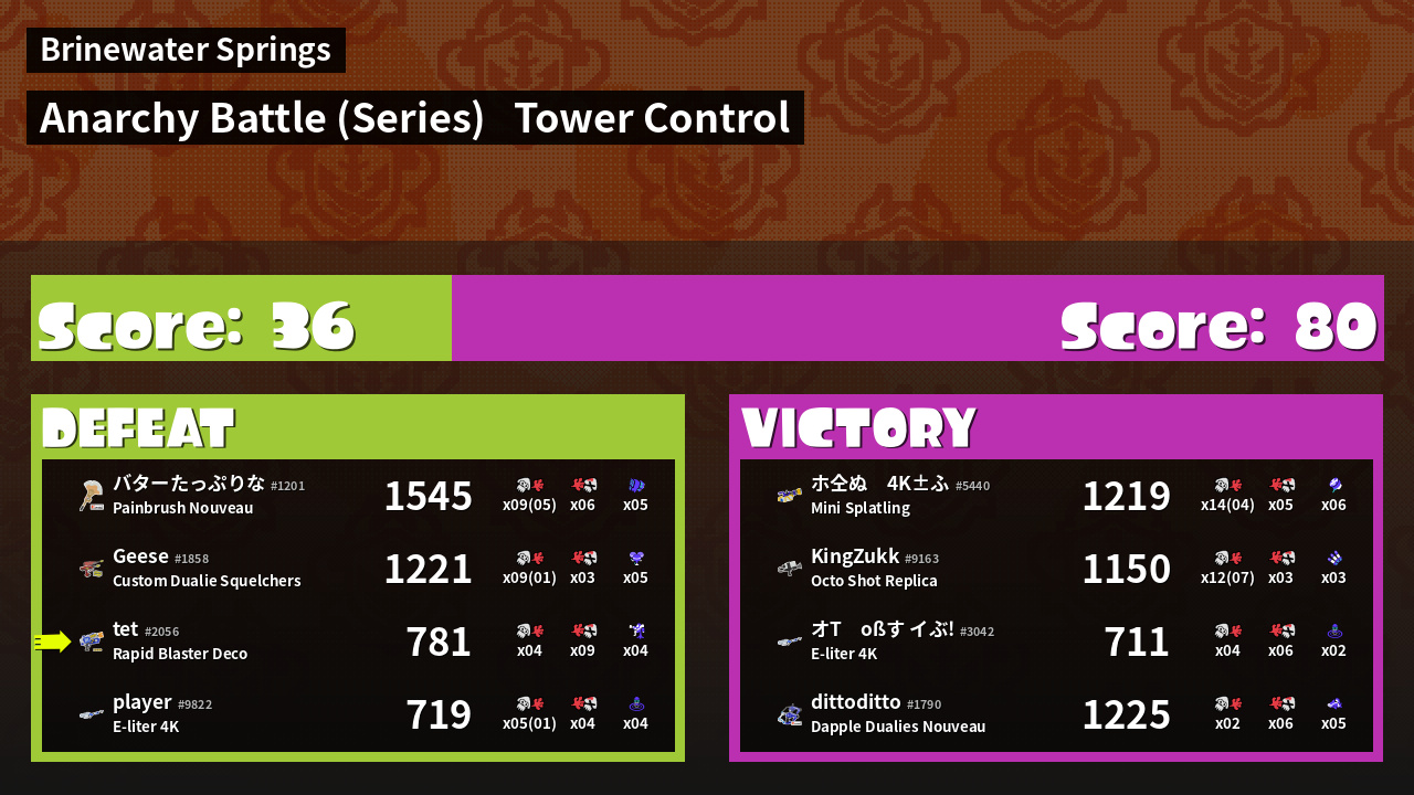 | Mode | Tower Control - Anarchy Battle (Series) | ||