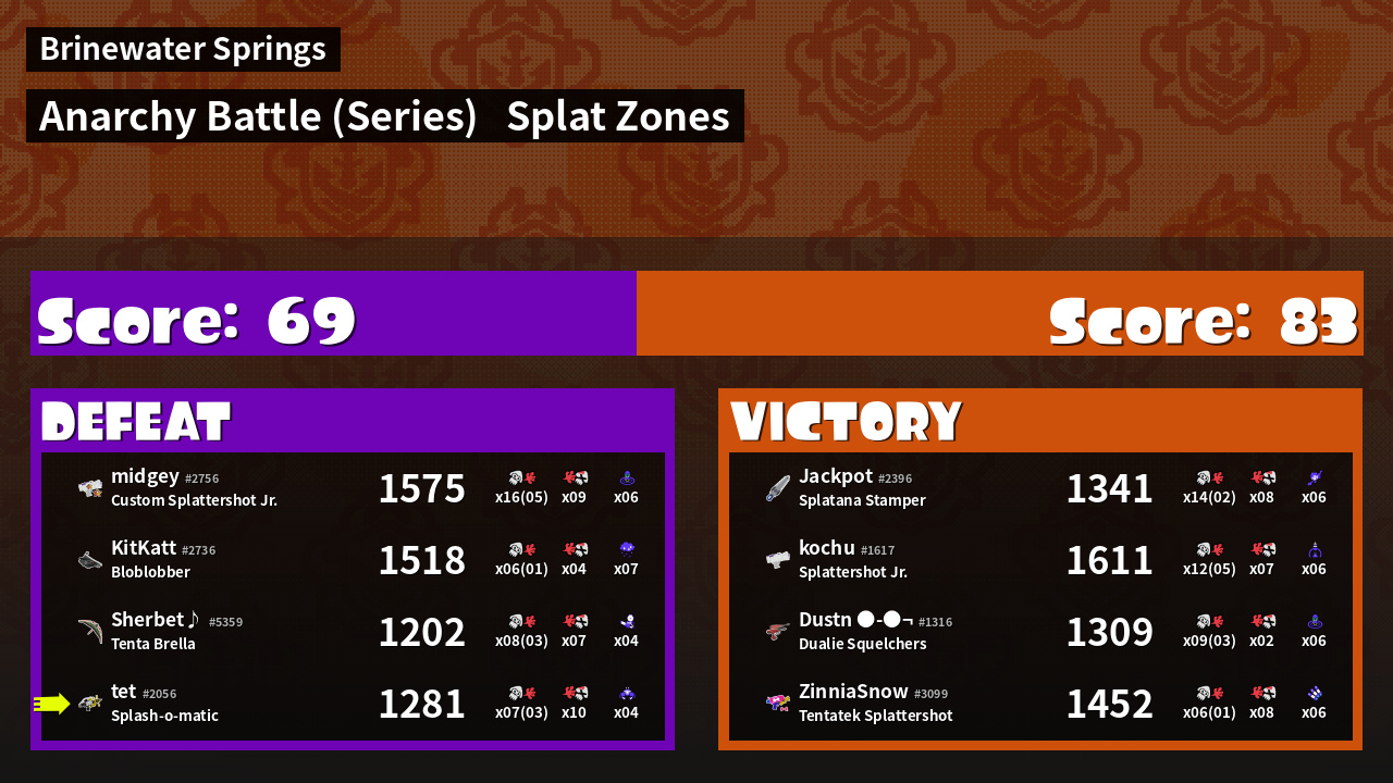 | Mode | Splat Zones - Anarchy Battle (Series) | ||