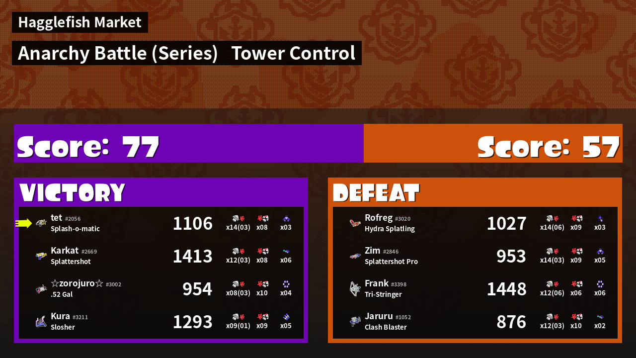| Medals | #1 Overall Splatter #1 Enemy Splatter #1 Splat Assister | ||
