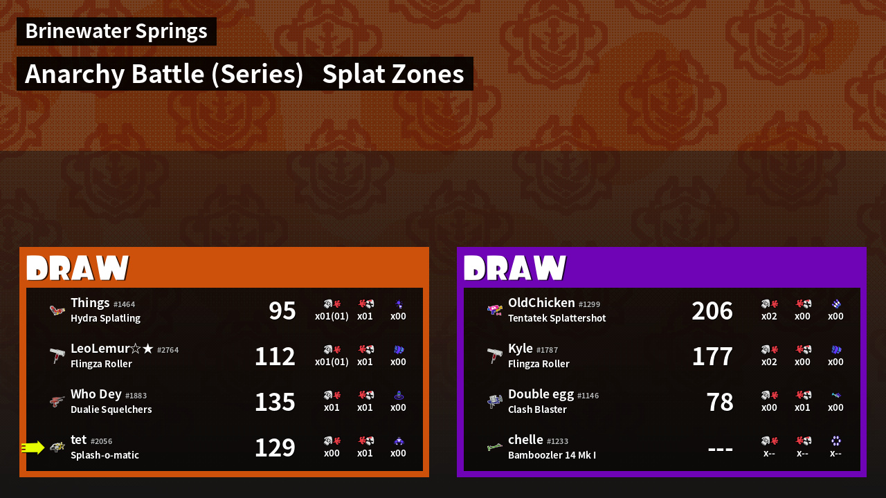 | Mode | Splat Zones - Anarchy Battle (Series) | ||