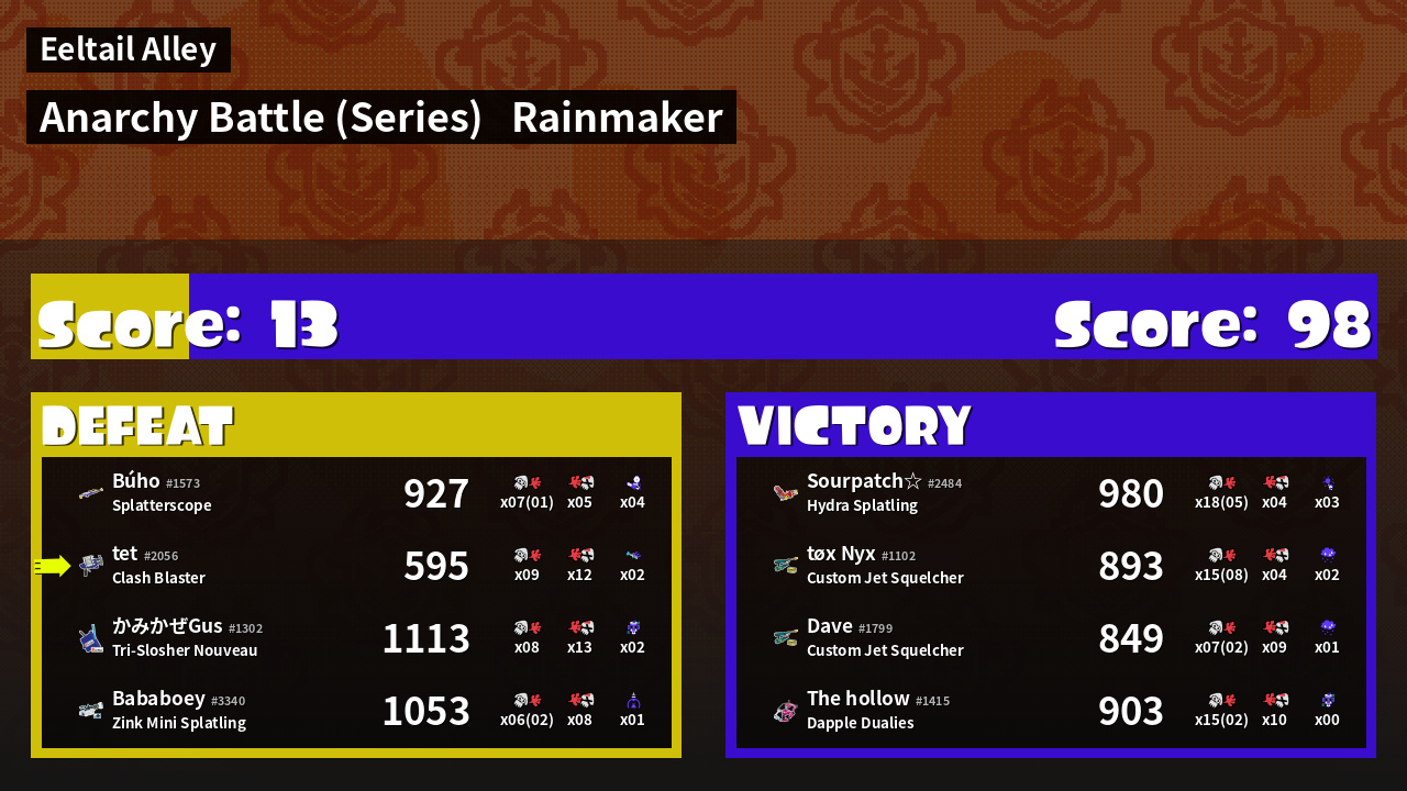 | Medals | #1 Overall Splatter #1 Enemy Splatter #1 Rainmaker Stopper | ||